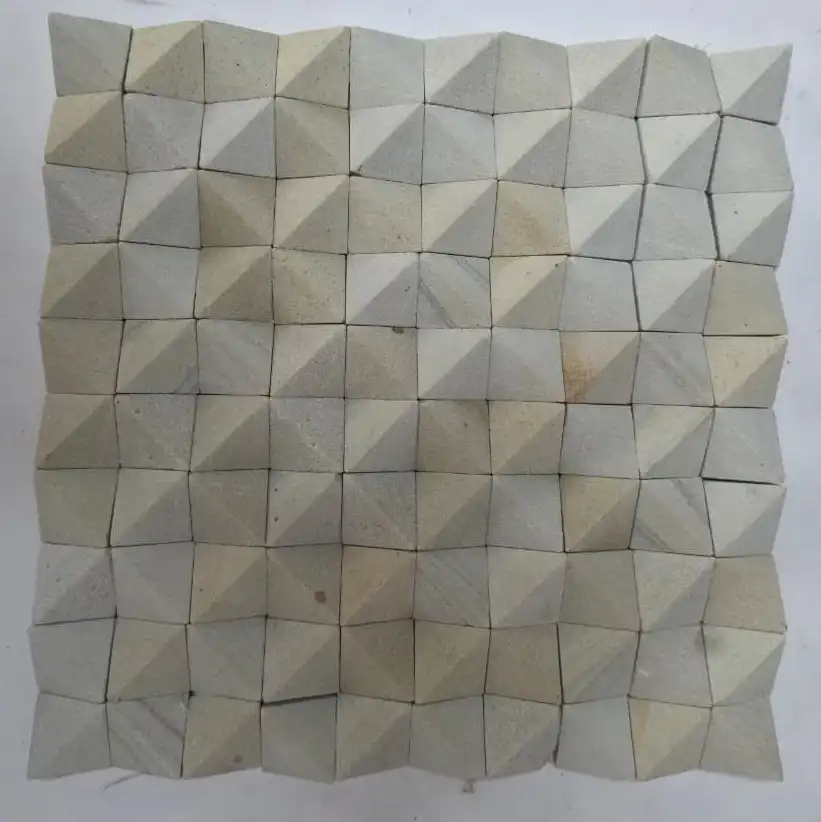 Elevate your interior or exterior design with the architectural depth of our 3D Pyramid Mosaic Tile. Crafted from genuine light grey and beige natural stone each tile features a unique, eye-catching pyramid profile that creates a dynamic play of light and shadow on any vertical surface.