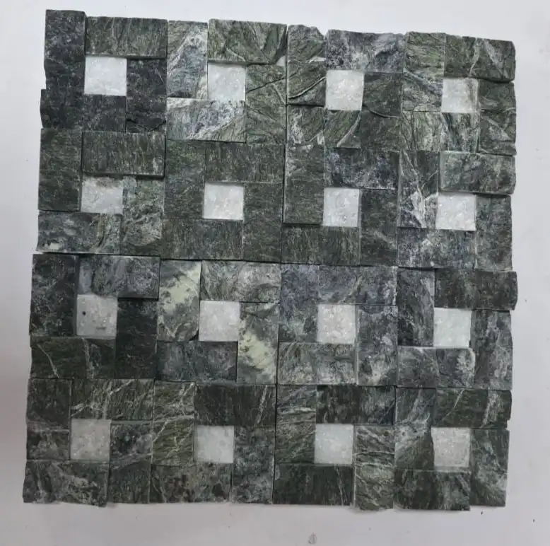 - Finish: Mixed finishes (textured/split-face green; smooth/honed white).